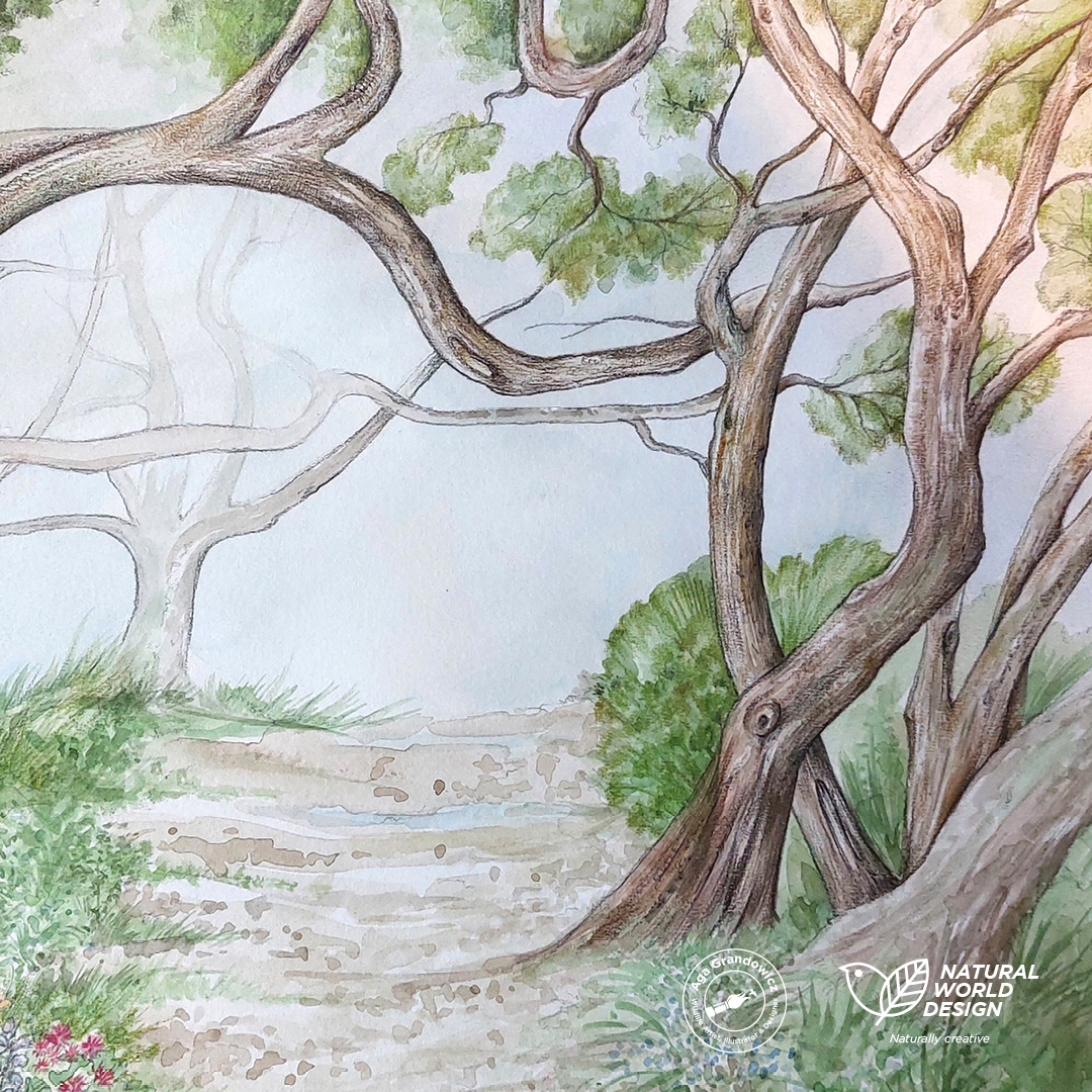Combining hand-drawn elements with real-life photos creates a dynamic and engaging visual experience. Visitors can explore the intricate details of the woodland ecosystem, seeing how each species fits into the broader environment.